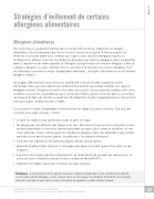 Stratégies d’évitement de certains allergènes alimentairesAllergènes alimentairesDes recherches se poursuivent partout dans le monde afin de mieux comprendre les allergies alimentaires. On n’a néanmoins pas encore trouvé le moyen de les guérir. À l’heure actuelle, les médecins ne peuvent établir avec certitude qui s’expose à des réactions allergiques légères ou modérées à un aliment et qui est susceptible de développer une réaction allergique sévère pouvant être fatale. L’ingestion d’une infime quantité de l’allergène peut provoquer une réaction allergique. Éviter la substance allergène en cause demeure donc le seul moyen de prévenir une réaction allergique. Pour de nombreuses personnes à risque d’anaphylaxie alimentaire, un régime d’abstention à vie de l’aliment allergène s’impose.On imagine difficilement à quel point la vie quotidienne se trouve modifiée quand la sécurité élémentaire d’une personne dépend de l’évitement d’un aliment qui pourrait entraîner une réaction allergique mortelle. Songeons à toutes les fois dans une journée où une personne ordinaire porte de la nourriture à sa bouche. La plupart des gens le font sans même y penser. Pour leur part, les personnes qui risquent de faire une réaction pouvant leur être fatale (une réaction anaphylactique) ne doivent rien tenir pour acquis. Chaque bouchée compte.Les personnes à risque d’anaphylaxie doivent prendre en charge leur propre sécurité. Cela veut dire s’en tenir à des règles de base, comme : Se laver les mains à l’eau savonneuse avant et après les repas. Ne manger que des aliments sans danger pour elles. Elles doivent toujours lire les étiquettes sur les produits alimentaires et éviter tout aliment présentant un risque élevé comme la nourriture en vrac ou les aliments connus comme ayant des substances allergènes dans leur préparation (par exemple arachide et noix dans la crème glacée, les pâtisseries, les aliments ethniques). S’informer des ingrédients des aliments préparés ailleurs qu’à la maison. Apprendre à utiliser l’auto-injecteur et l’enseigner aux autres pour qu’ils puissent les aider en casd’urgence. Toujours porter un auto-injecteur d’épinéphrine, un médicament qui pourrait leur sauver la vie, et porter une pièce d’identité médicale (comme un bracelet MedicAlertMD). S’abstenir de manger quand elles n’ont pas leur auto-injecteur.Remarque : Il est prudent pour les parents de jeunes enfants (en particulier si des membres de la famille ont des antécédents d’allergies ou des risques élevés de développer des allergies) d’introduire de nouveaux aliments à la maison avant qu’ils soient consommés à la garderie ou dans d’autres milieux.L’anaphylaxie à l’école et dans d’autres milieuxDroit d’auteur © 2005-2015 Société canadienne d’allergie et d’immunologie clinique47Annexe G